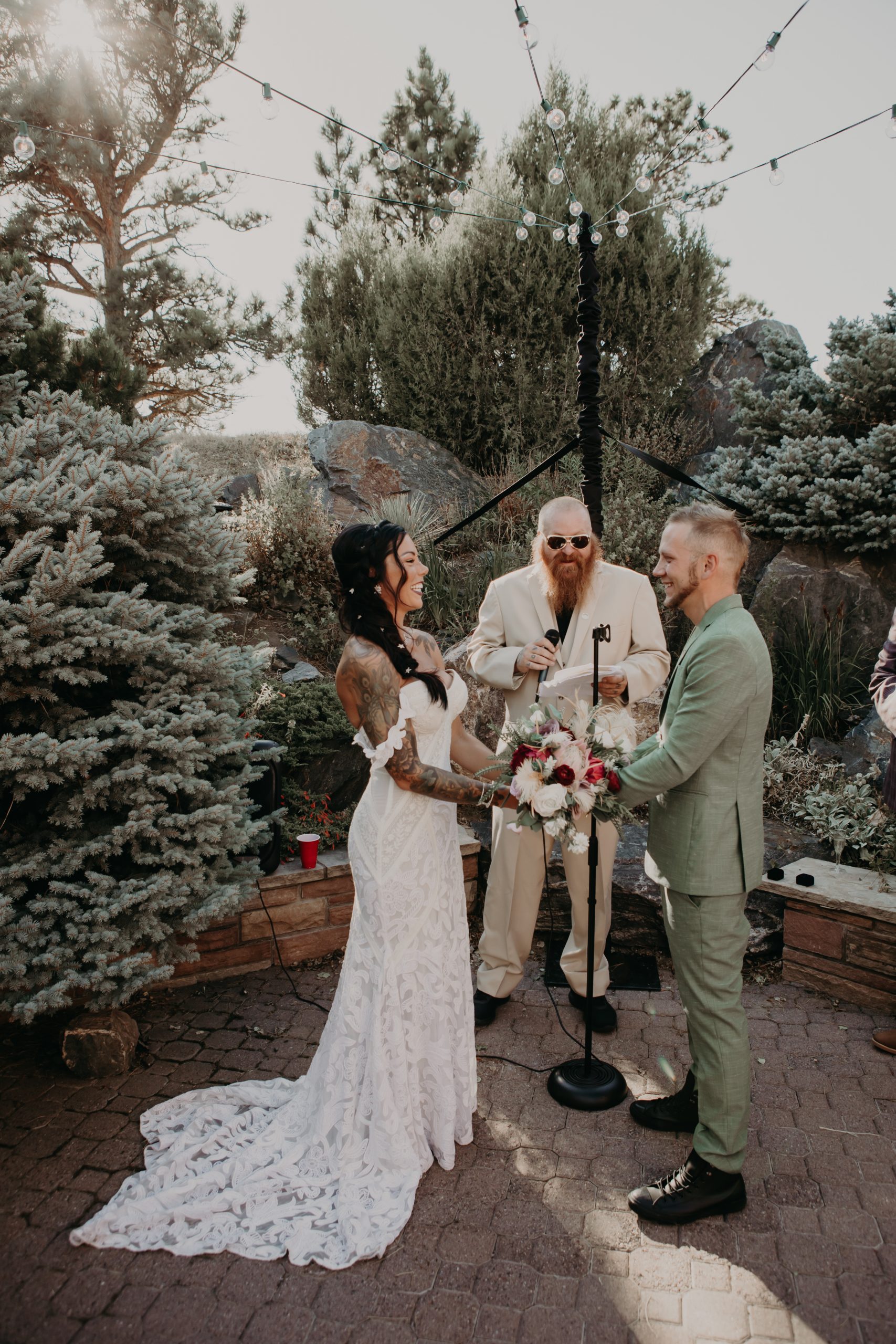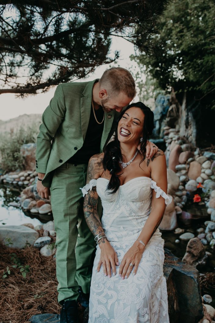 Ready to party is an understatement when it comes to this intimate wedding celebration in Boulder, Colorado. Ryan and Kristen first hired me under the pretense that I could keep up with them and party to the max on their special day. And so we did! The bride put on her Rue De Seine gown from Australia, along with her all white converses, while the groom sported a green suite with black accents and all black converses. After sharing a very special and long-awaited first look the party was ready to begin. At 4:20pm the happy couple and their friends lit up their favorite libation and then said their I-dos in front of all their favorite people.