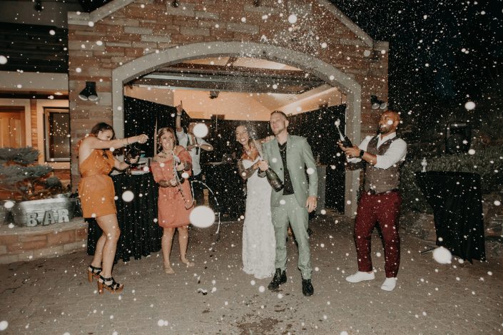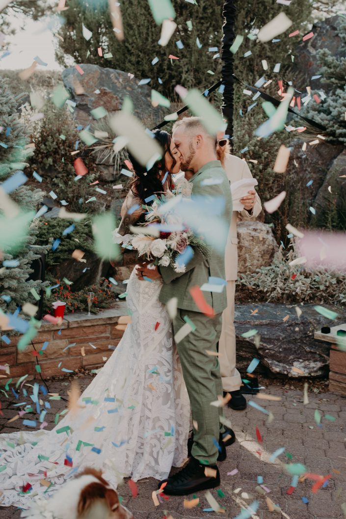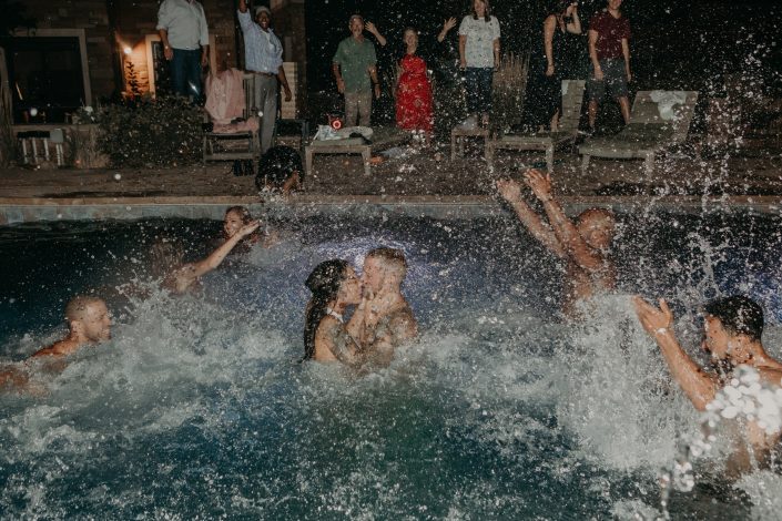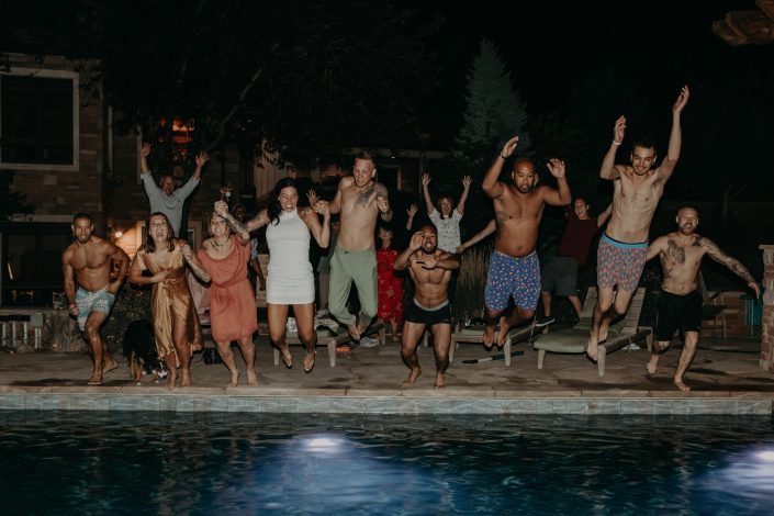 A long time friend acted as their officiant, and at the moment of their pronunciation as husband and wife the crowd let the confetti fly! Ryan and Kristen wanted to light up the mother of all joints together on the hillside as the sun went down, and the view of Denver and the surrounding mountains did not disappoint. A local taco truck came in to serve dinner, and dancing ensued in the driveway under twinkly lights to all the couples favorite rap artists. The night ended with the entire wedding party jumping into the pool! As an adventure wedding photographer I love it when couples do their wedding their way! If you are planning a unique Colorado wedding, shoot me a message and let’s begin planning your wedding day of your funnest dreams!