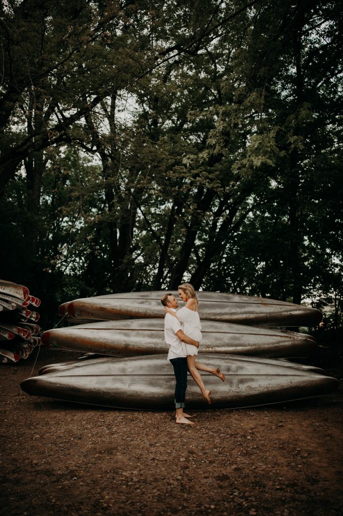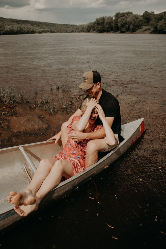 As a traveling wedding photographer I flew all the way to Minnesota for this canoe adventure engagement session! Lauren and Sam had the great idea to do their session on the river and I couldn’t agree more. We rented canoes and headed out to an island. The session turned extra adventurous when some rough housing led to the canoe tipping and a bit of chaos. Lauren and Sam’s ability to go with the flow and appreciate memories in the making is really what made this couples session extraordinary. After what could have been a day ruining event, they laughed it off and said they couldn’t wait to see the photos from their river adventure gone wrong.